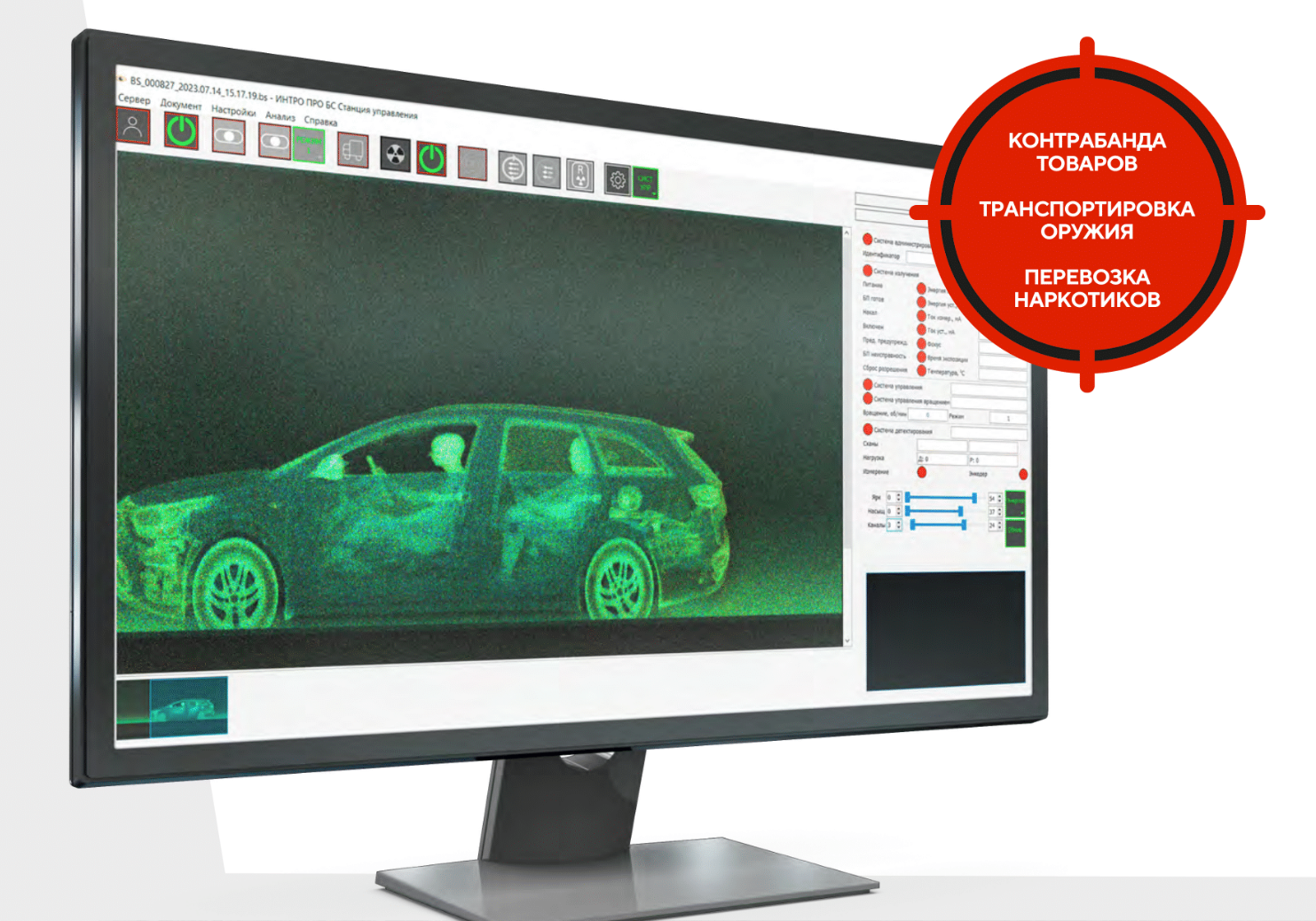 MIDK is a control system based on technology that records X-ray backscattering in order to provide visual control of the contents of inspected objects and the recognition of contraband goods and other hidden threats. Inspection occurs through one-sided radiation scanning of stationary objects as the MIDC moves past them. A high-quality image of the inspected objects is displayed in real time on the monitor screen of the system control operator, which allows you to quickly detect the presence of hazards and immediately take measures to prevent them. Newest