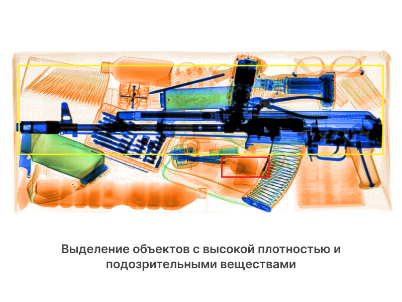 ▪ Функция автоматического выделения подозрительных веществ: опасные жидкости, взрывчатка, наркотики, оружие.