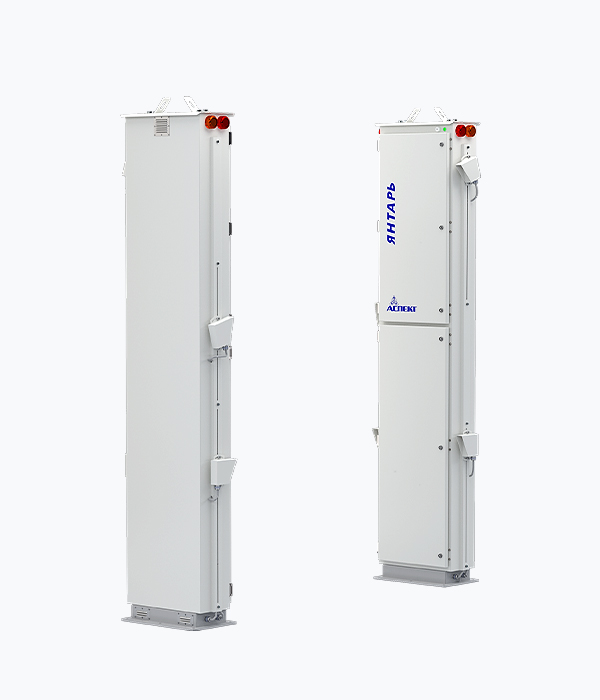 Radiation portal monitors of the Yantar-A series are made in the form of metal racks installed opposite each other along the edges of the roadway. Electronics units, gamma and neutron detectors are located inside the racks. Radiation monitors are equipped with sound and light alarms, as well as indications for diagnosing performance.