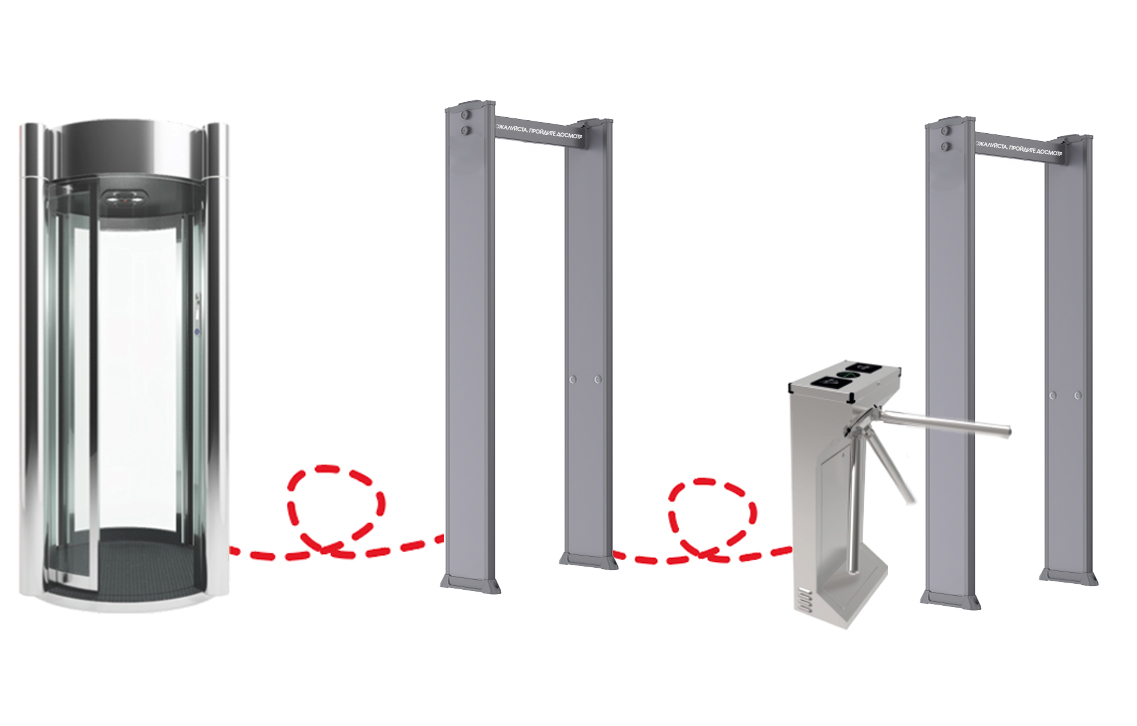 The output for controlling actuators - “dry contacts” - allows you to integrate the model into an access control system. The metal detector can be installed in conjunction with a turnstile, tripod, airlock cabin, airlock vestibule, automatic door and other devices.