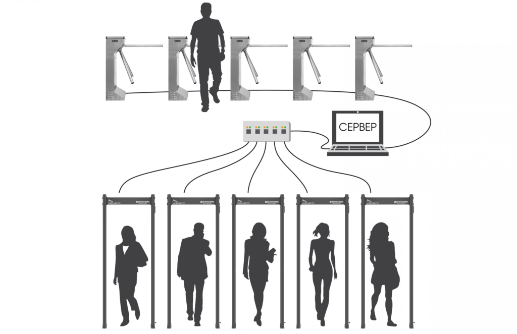 The BLOCKPOST V1 series models now have a unique function for monitoring several hundred metal detectors, configuring and managing them using a single server. This function is necessary for transmitting and analyzing data on the number of passes, sensitivity settings, and number of alarms. Information can be received in real time from one to several hundred metal detectors.