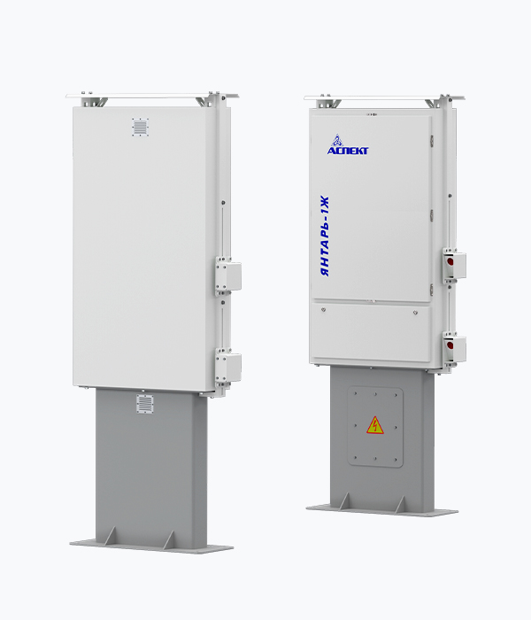 Radiation portal monitors of the Yantar-Zh series are made in the form of metal racks installed along the railway track. Electronics units, gamma and neutron detectors are located inside the racks. Radiation monitors are equipped with audible alarms.