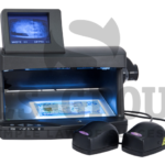 It has an enlarged working area above the object table with a translucent screen, clamps for fixing the documents being examined, and a protective curtain from the harmful effects of ultraviolet radiation. The design of the device allows you to install a Regula 100X magnification with 10x magnification and an external illuminator.